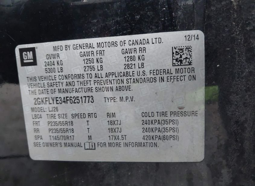 - VIN: 2GKFLYE34F6251773