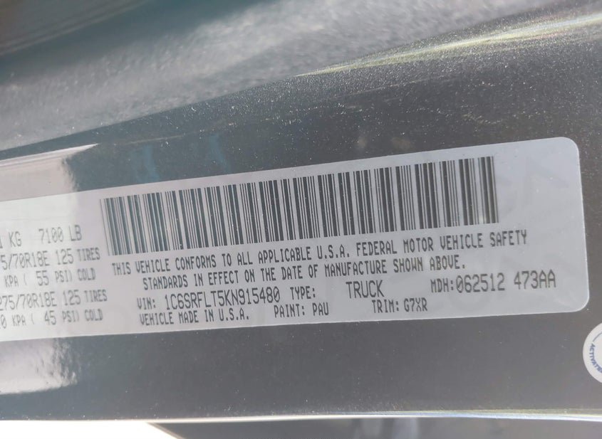 - VIN: 1C6SRFLT5KN915480