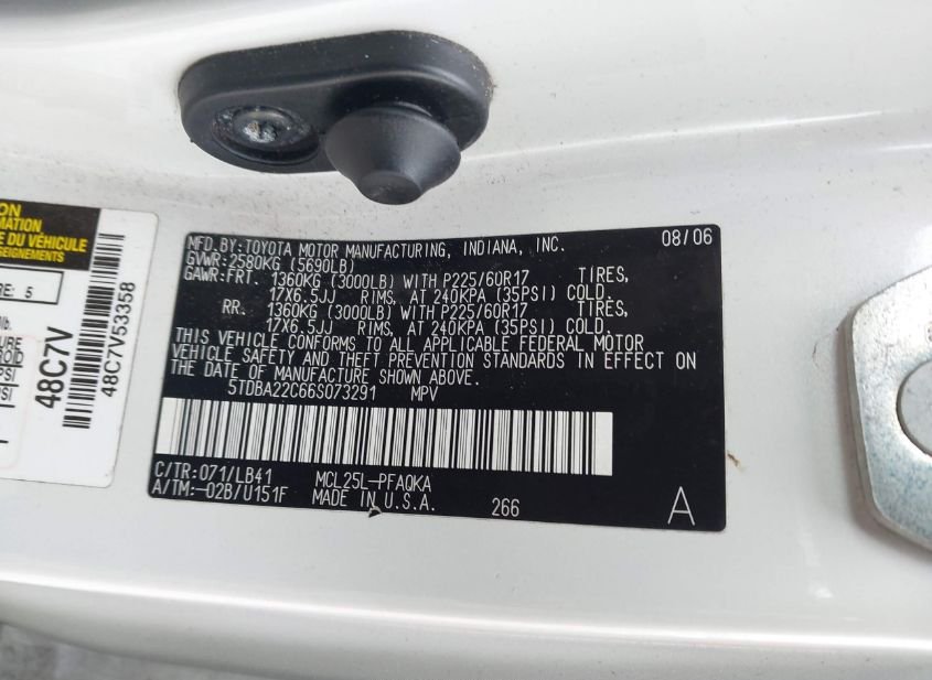 - Название лота: 2006 TOYOTA SIENNA XLE