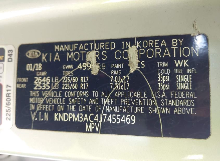 - VIN: KNDPM3AC4J7455469
