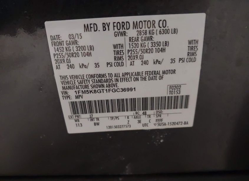 - VIN: 1FM5K8GT1FGC36991