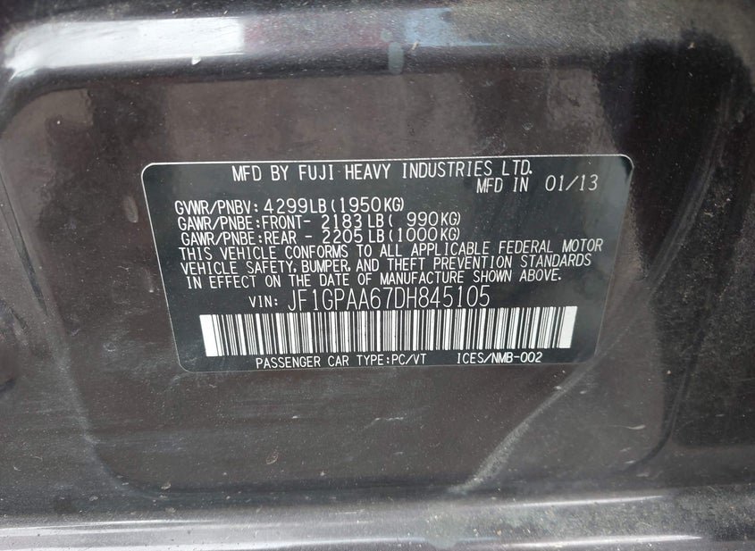 - VIN: JF1GPAA67DH845105