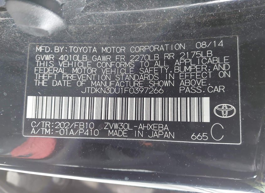 - VIN: JTDKN3DU1F0397266