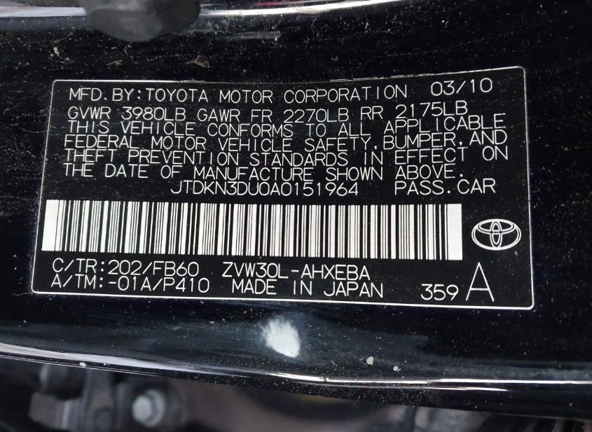 - VIN: JTDKN3DU0A0151964