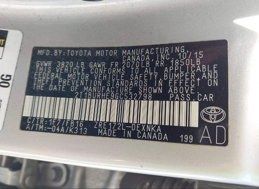 - Название лота: 2016 TOYOTA COROLLA LE