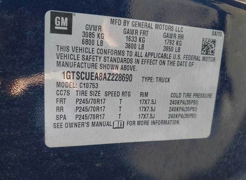 - VIN: 1GTSCUEA8AZ228690