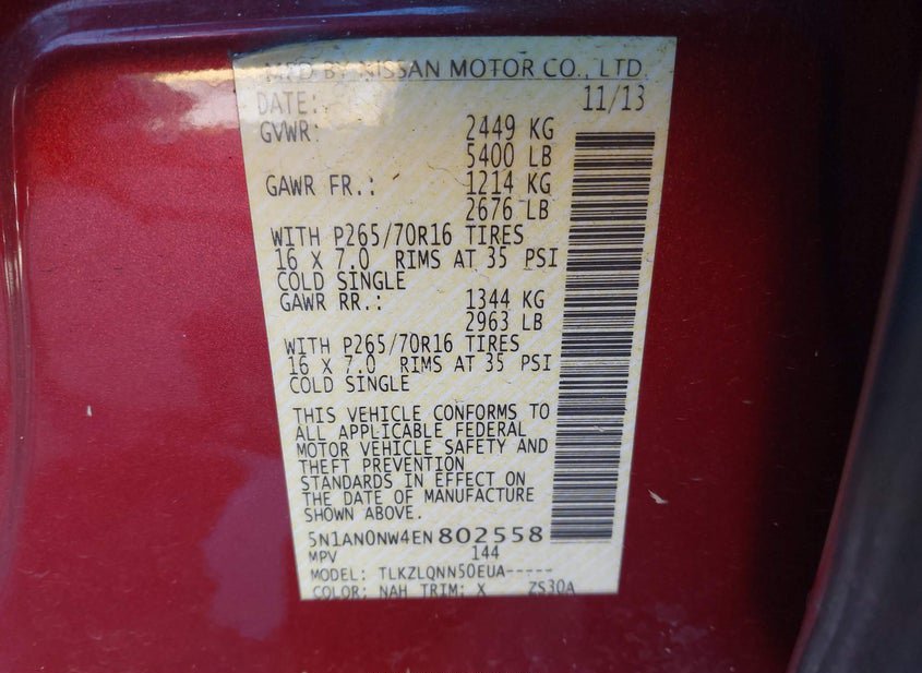 - VIN: 5N1AN0NW4EN802558