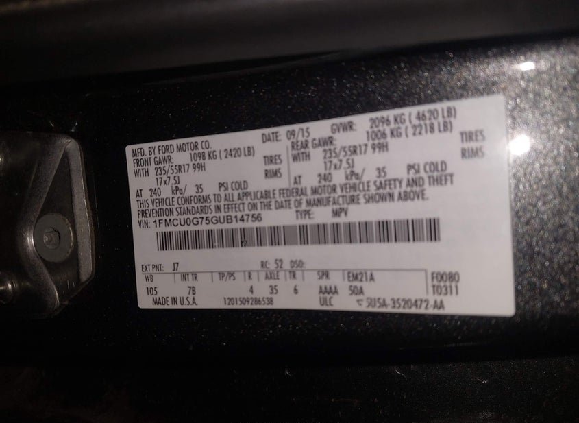 - VIN: 1FMCU0G75GUB14756