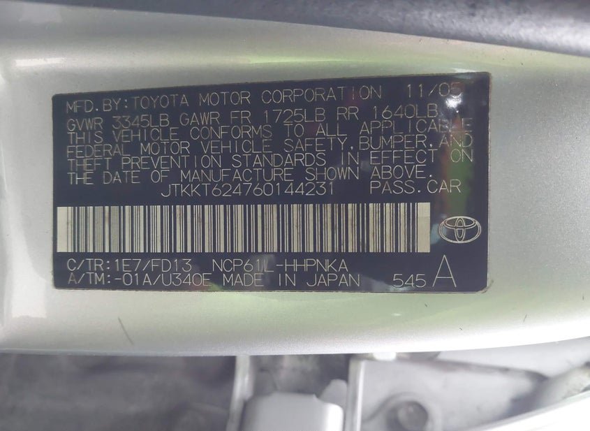- VIN: JTKKT624760144231