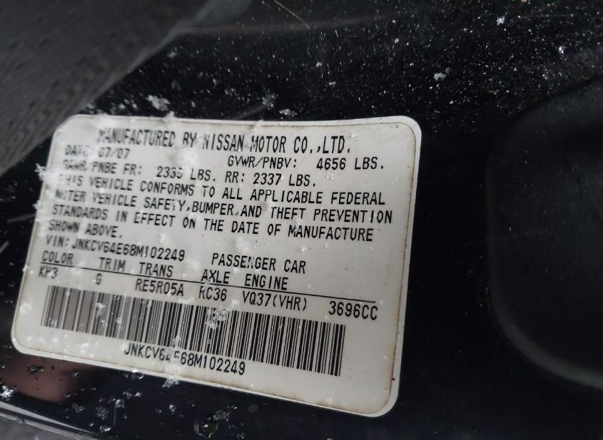 - Название лота: 2008 INFINITI G37 JOURNEY