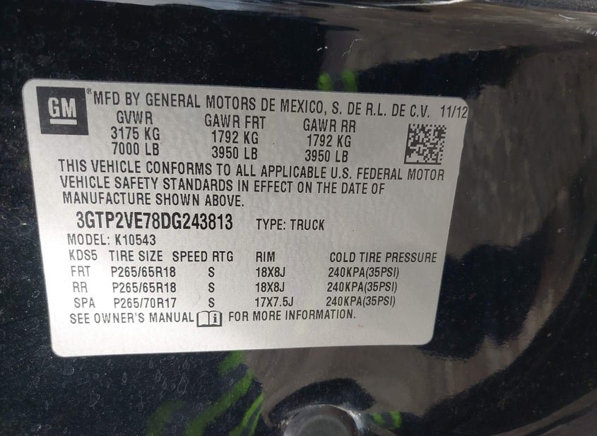 - VIN: 3GTP2VE78DG243813