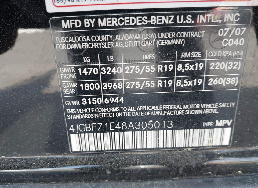 - VIN: 4JGBF71E48A305013
