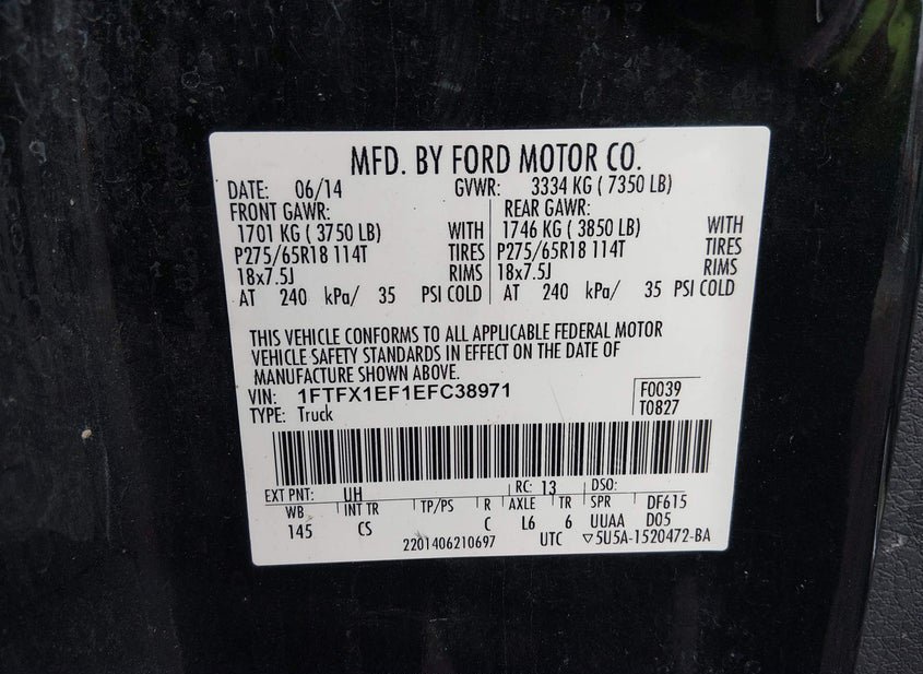 - VIN: 1FTFX1EF1EFC38971