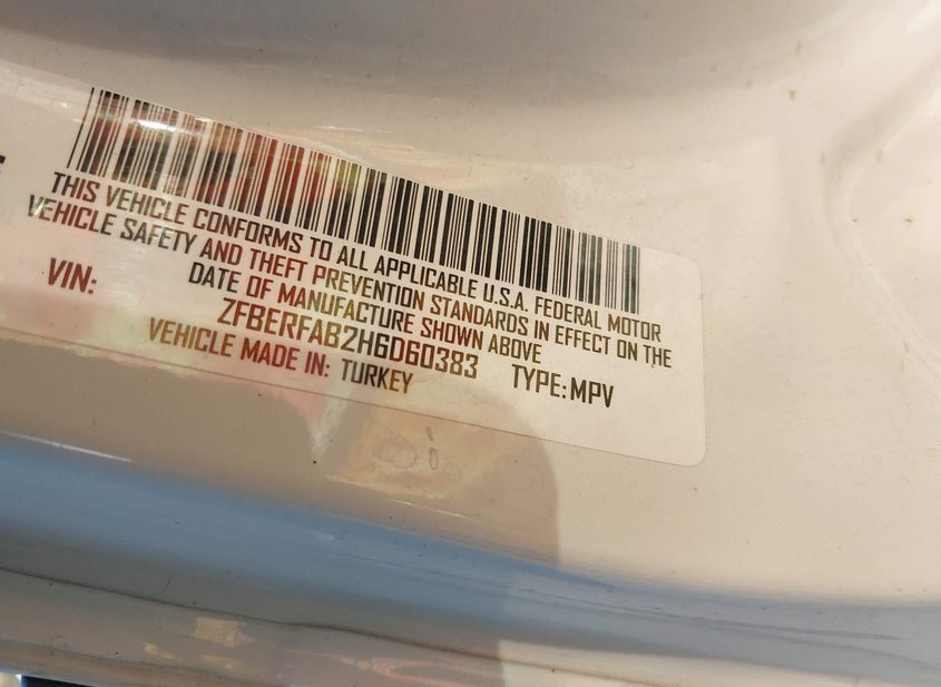 - VIN: ZFBERFAB2H6D60383