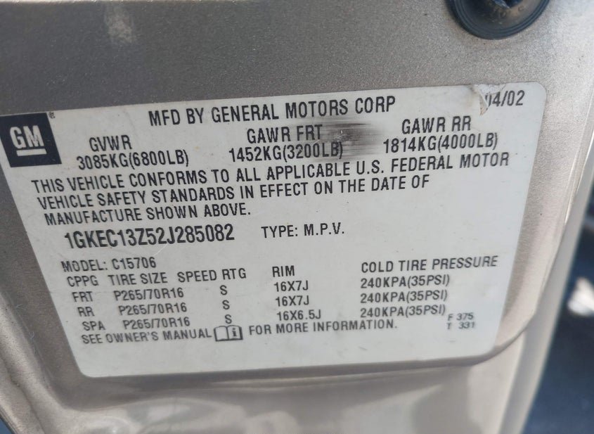 - VIN: 1GKEC13Z52J285082