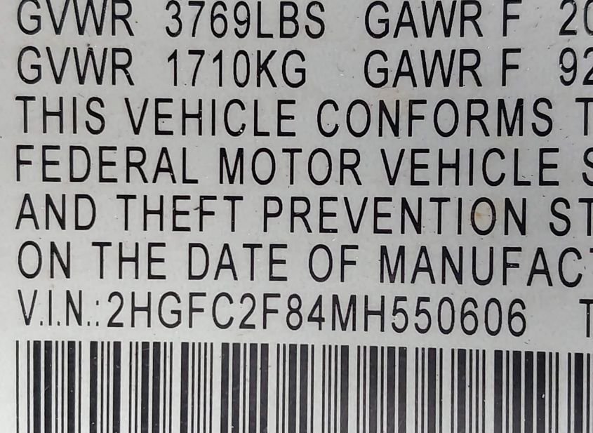 - VIN: 2HGFC2F84MH550606