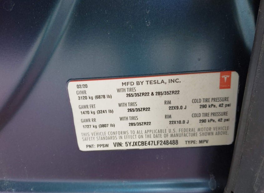 - VIN: 5YJXCBE47LF248488