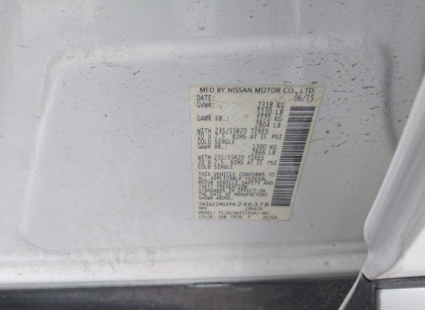 - VIN: 5N1AZ2MGXFN246378