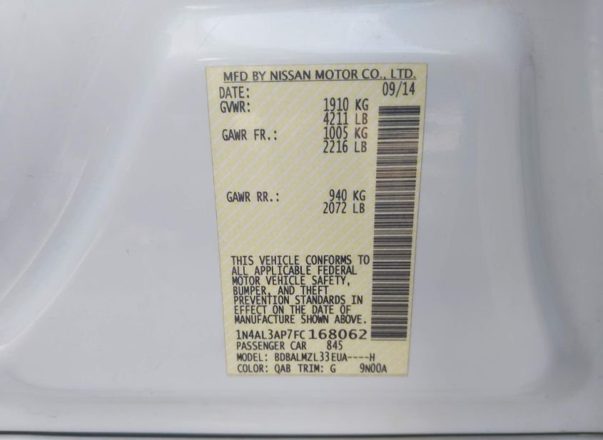- VIN: 1N4AL3AP7FC168062