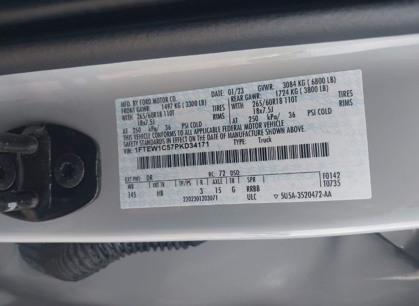 - VIN: 1FTEW1C57PKD34171