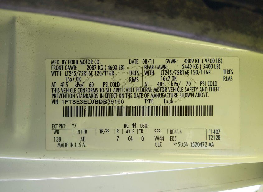 - VIN: 1FTSE3EL0BDB39166