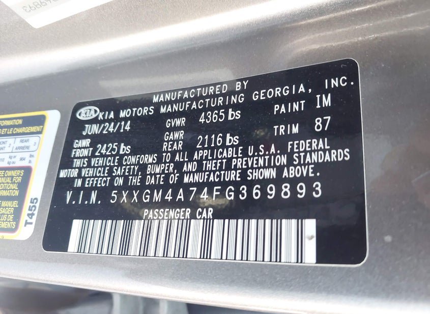 - VIN: 5XXGM4A74FG369893