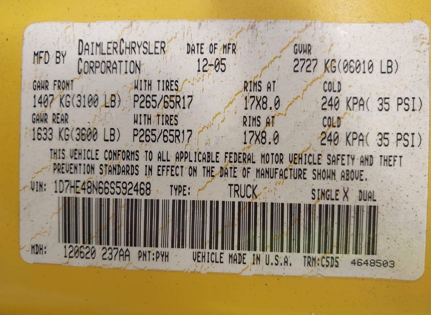 - VIN: 1D7HE48N66S592468