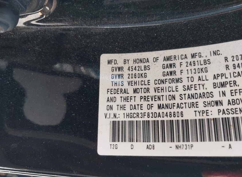 - VIN: 1HGCR3F83DA048806