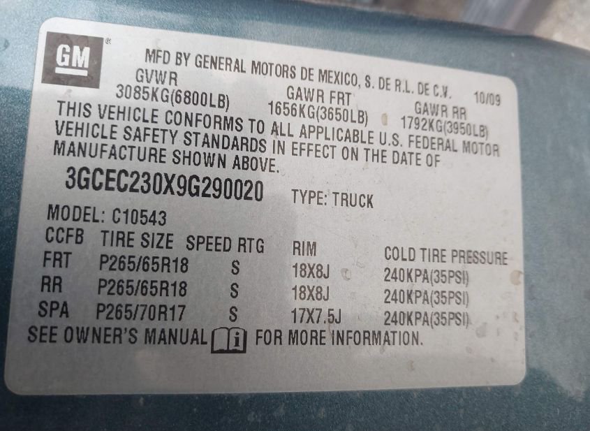 - VIN: 3GCEC230X9G290020