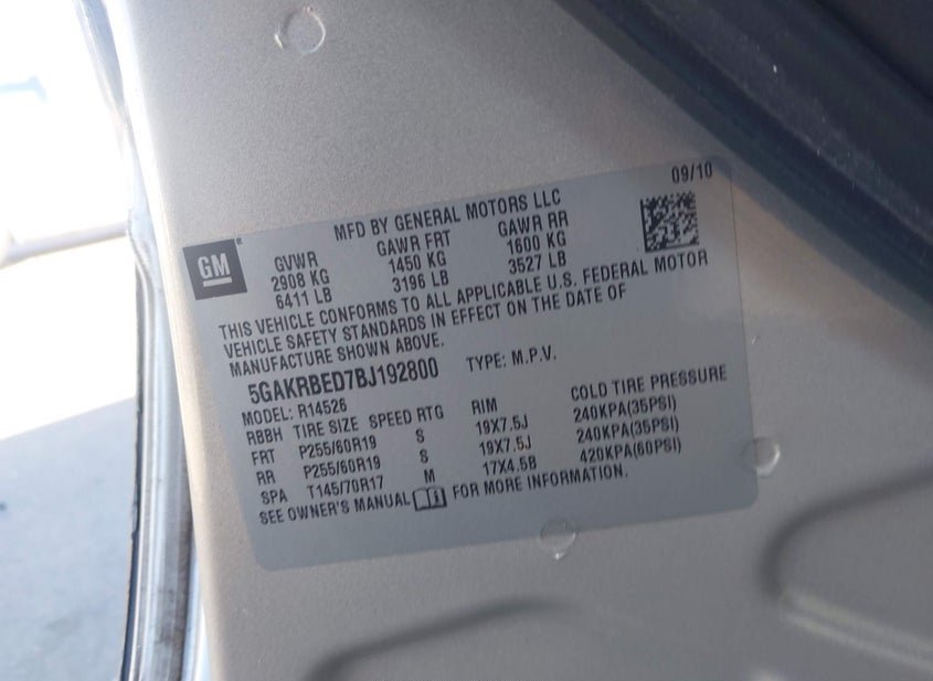- VIN: 5GAKRBED7BJ192800