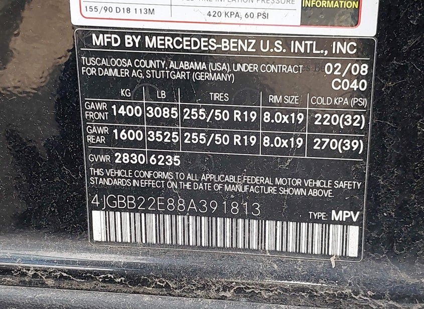 - VIN: 4JGBB22E88A391813