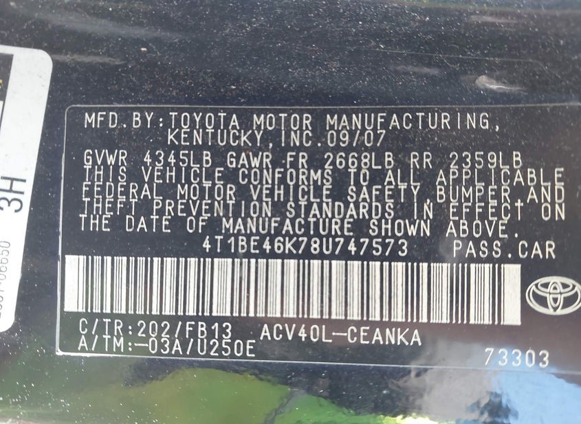- VIN: 4T1BE46K78U747573