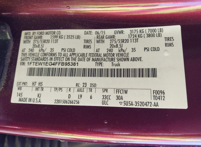 - VIN: 1FTEW1EG4FFB95381