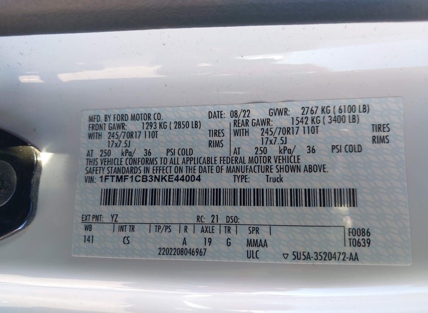 - VIN: 1FTMF1CB3NKE44004