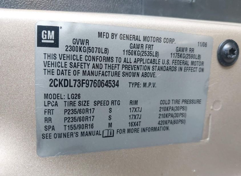 - VIN: 2CKDL73F976064534