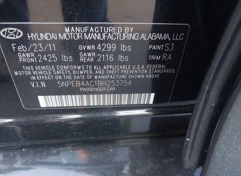 - VIN: 5NPEB4AC1BH253754