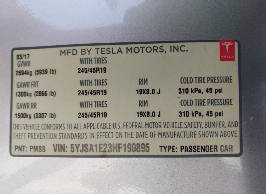 - VIN: 5YJSA1E23HF190895