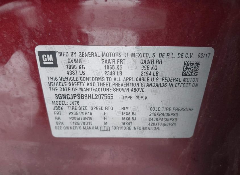 - VIN: 3GNCJPSB8HL207565