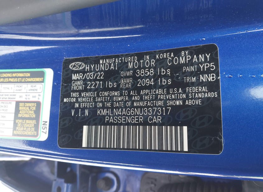 - VIN: KMHLN4AG6NU337317