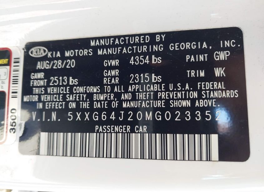 - VIN: 5XXG64J20MG023352