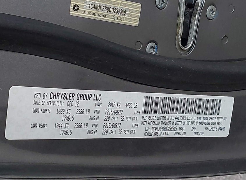 - VIN: 1C4NJPFB8DD238309