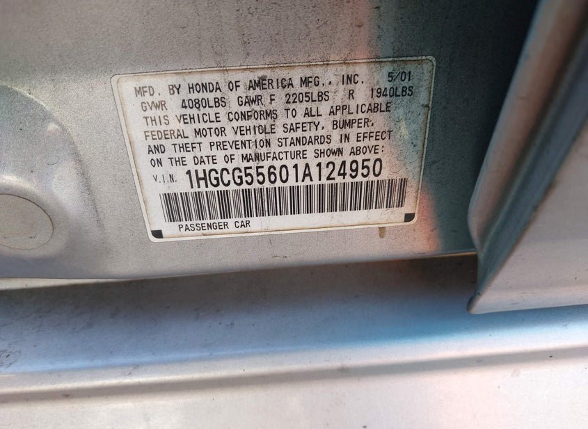 - VIN: 1HGCG55601A124950