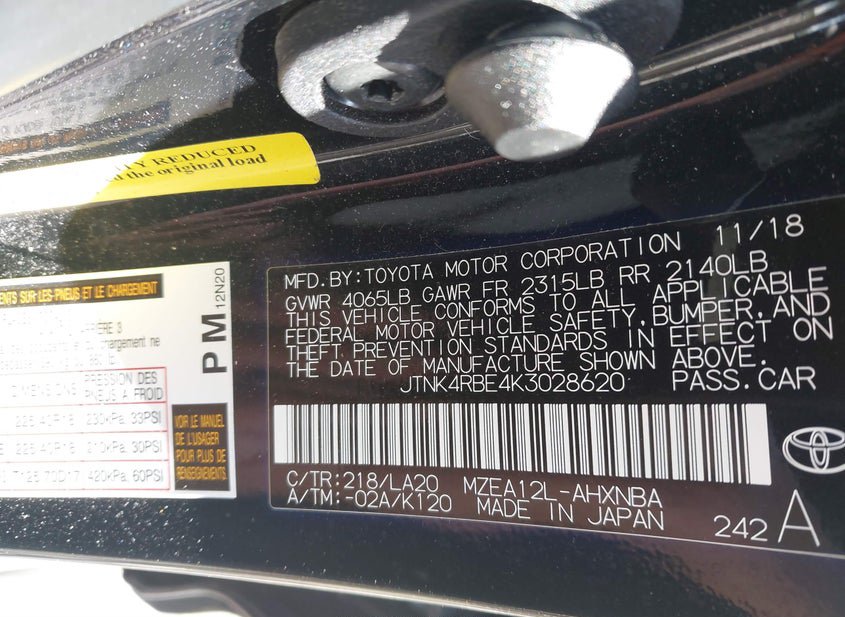 - VIN: JTNK4RBE4K3028620