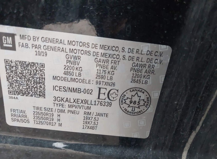 - VIN: 3GKALXEX9LL176339