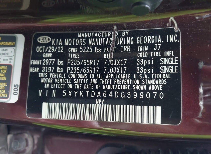- VIN: 5XYKTDA64DG399070