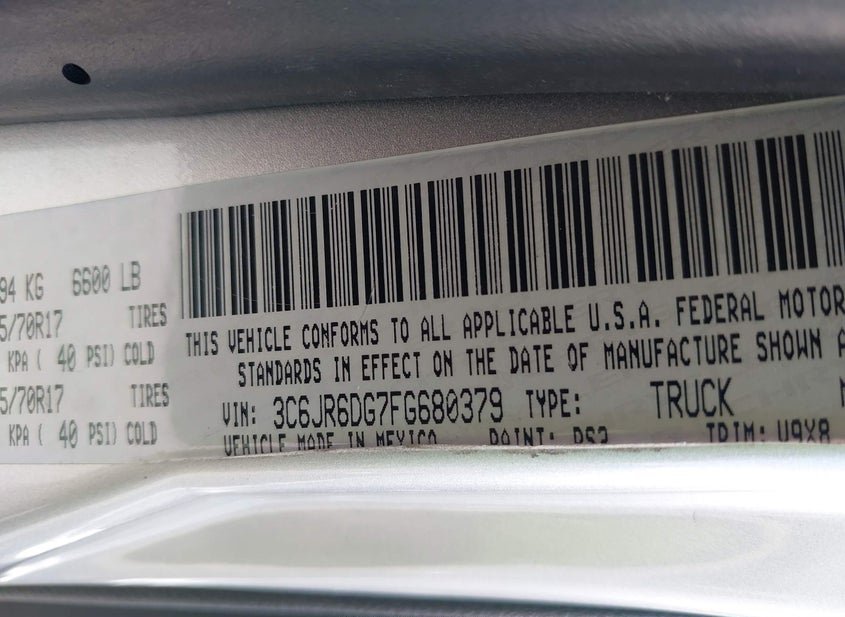 - VIN: 3C6JR6DG7FG680379