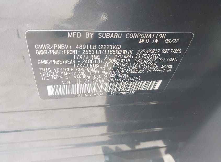 - VIN: JF2SKAMC9NH489909