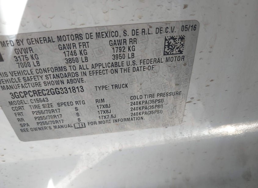 - VIN: 3GCPCREC2GG331813