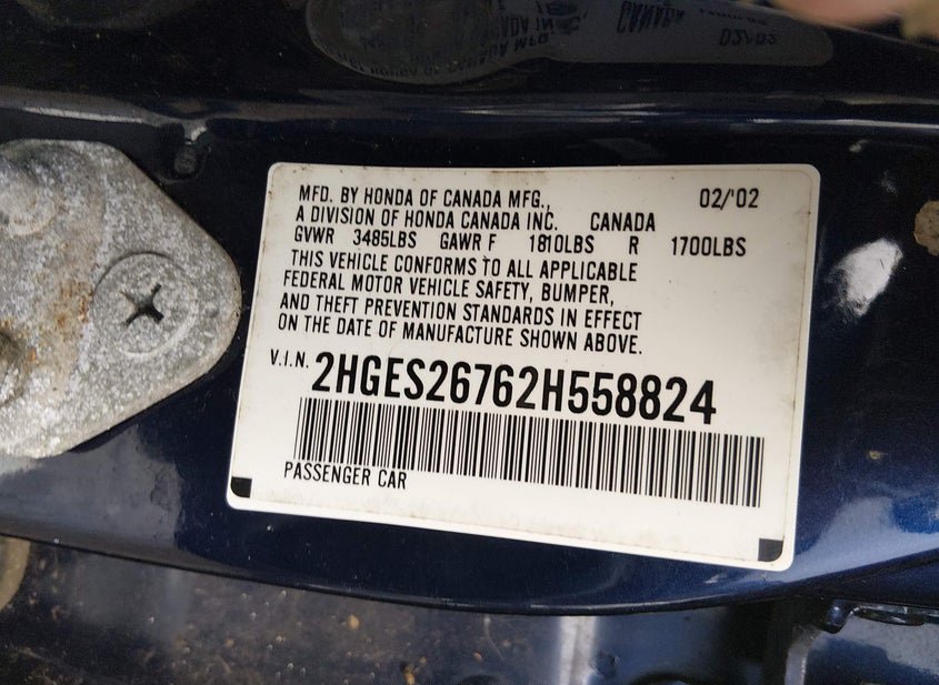 - VIN: 2HGES26762H558824