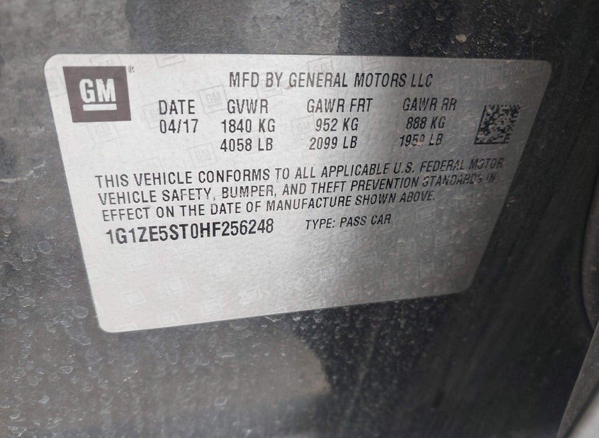 - VIN: 1G1ZE5ST0HF256248